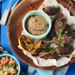 Lägg grillspetten i blöt. Blanda ströbröd och vatten, låt svälla ca 2 minuter. Rör ner ägg, curry, garam masala, salladslök, salt, peppar, lammfärs och blanda till en smidig smet.